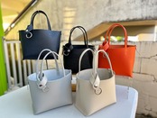こちらは、牛革(エンボス加工)の小さめトートバッグで、かわいいキーホルダーが付いています。シンプルでありながら洗練されたデザインが、あなたの個性を引き立ててくれます。革の質感が上品で、どんなコーディネートにもマッチするアイテムです。