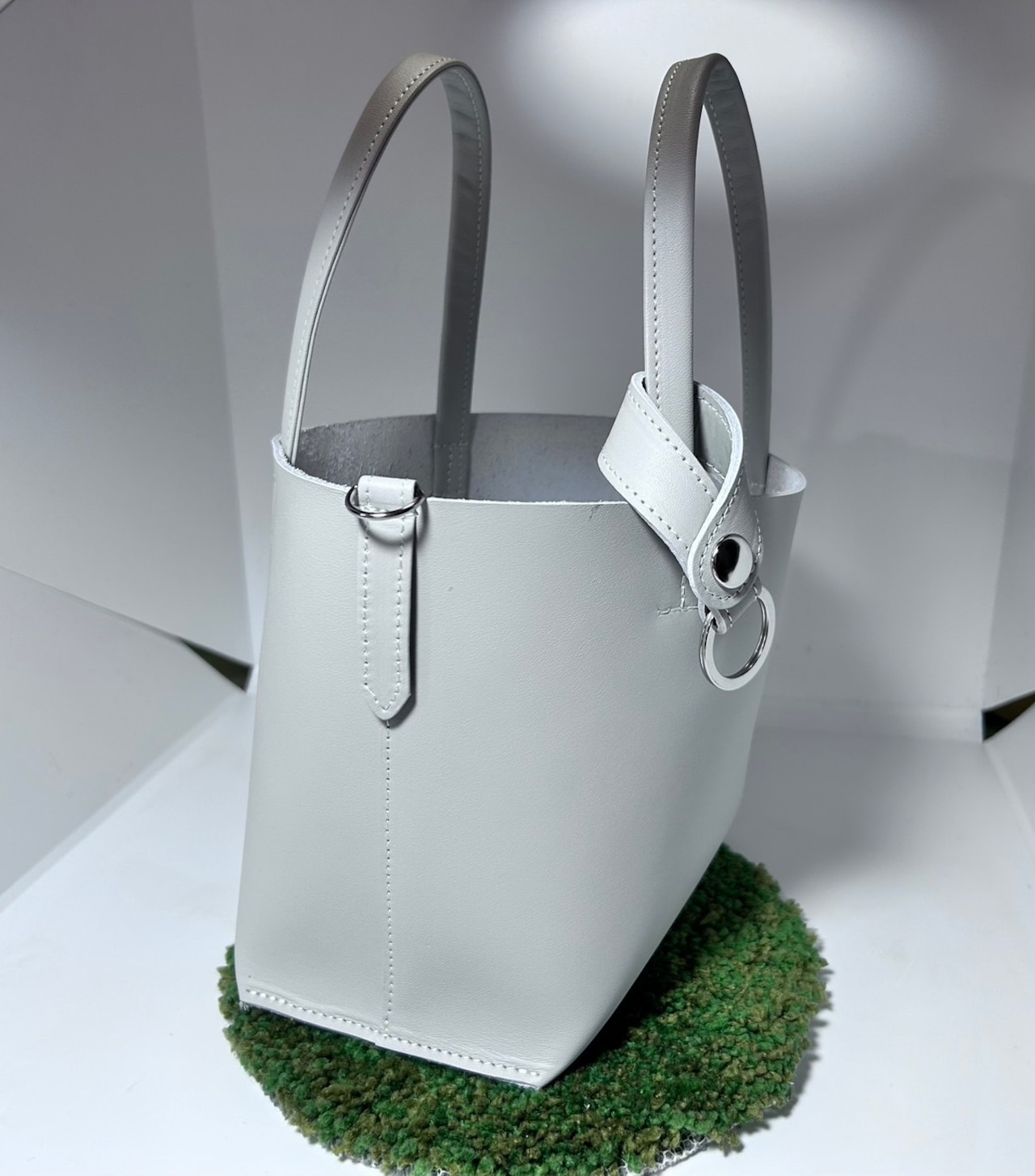 こちらは、牛革(スムース革)の小さめトートバッグで、かわいいキーホルダーが付いています。シンプルでありながら洗練されたデザインが、あなたの個性を引き立ててくれます。革の質感が上品で、どんなコーディネートにもマッチするアイテムです。